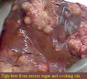 If the liver photo above doesn't turn you around nothing will, but it turns my stomach every time I looks at it. In addition, I am not saying good fat would revive the liver in the image above, in fact I would say it would be too late other than a total transplant. On the other hand as George Burns the comedian said "If I knew I was going to live so long, I would have taken better care of myself". And this is true because there are people that live and live with livers that look like this one illustrated, but in most cases they are in agony, with a host of related problems, but don't have the guts to blow their brains out.